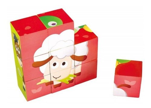 Rompecabezas De Bloques En Madera Para Bebés Animales Granja